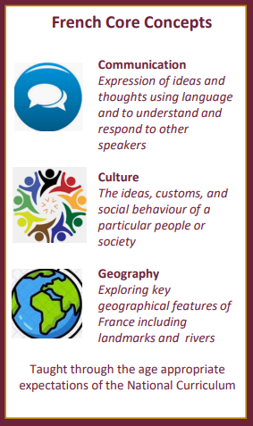 By delivering high-quality French lessons, pupils will be given the opportunity to express their ideas and thoughts in another language, and understand and respond to speakers, both in speech and in writing.