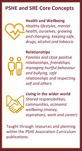 Our curriculum follows the PSHE Association scheme, enhanced and supplemented by high quality external providers e.g DARE, and planned events with a specific focus, e.g. Anti -Bullying Week. The core concepts taught are Health and Wellbeing, Relationships and Living in the Wider World. Within the curriculum offer, there is emphasis on the needs of our specific community and the locality that we serve.